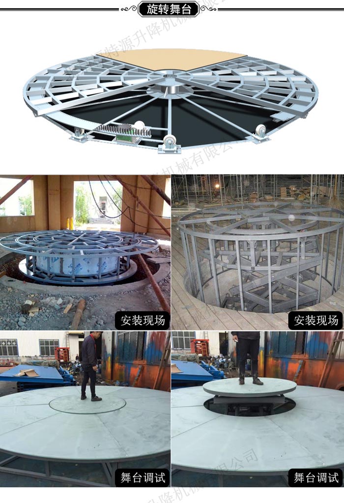 旋轉舞臺有升降、旋轉、傾斜等多種功能,控制采用自鎖、互鎖、行程開關、機械限位、液壓防爆等保護措施。